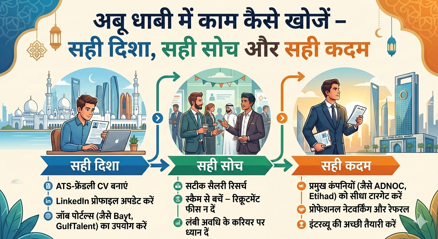अबू धाबी में काम पाने का पहला नियम है — तैयारी + धैर्य + प्रोफेशनल अप्रोच।